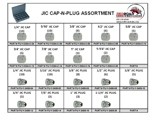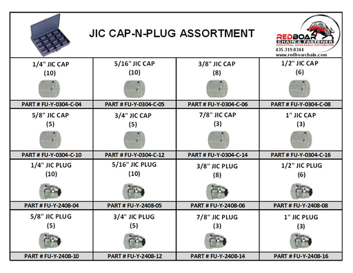JIC CAP-N-PLUG-ASSORTMENT STEEL JIC FITTINGS 102-piece assortment 1/4" - 1-1/4" In Large 20 Hole Metal Locking Drawer 18" x 12" x 3" FREE SHIPPIN...