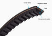 The TRIPLEX is the perfect choice for applications requiring smaller pulley diameters, offering a significantly increased frictional force compared to standard wrapped belts. With its raw-edge cogged design, it guarantees exceptional reliability and is widely employed in various mechanical power transmission sectors. Unlike wrapped V-belts, the Raw Edge V-belts boast a unique rubber compound that ensures superior wear resistance.